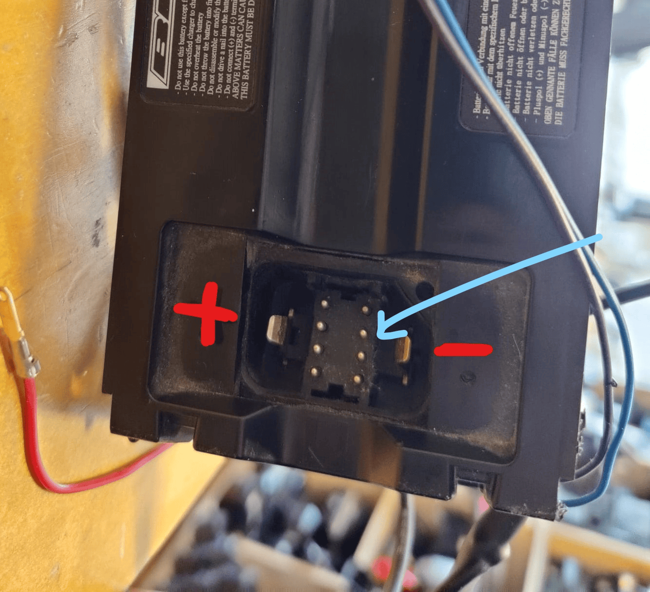Careful here. No orange wire, it is the white one! Apparently, there's no NTC connector provided to the charger
