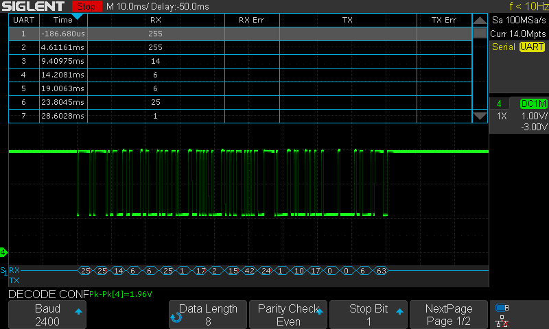Measuring at the Arduino TX pin. No error messages. All signals so clear. All bytes transmitted.