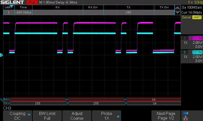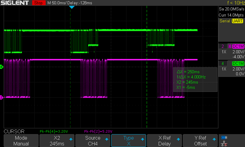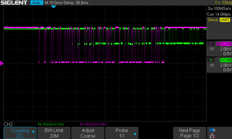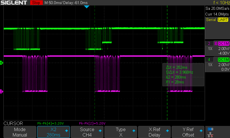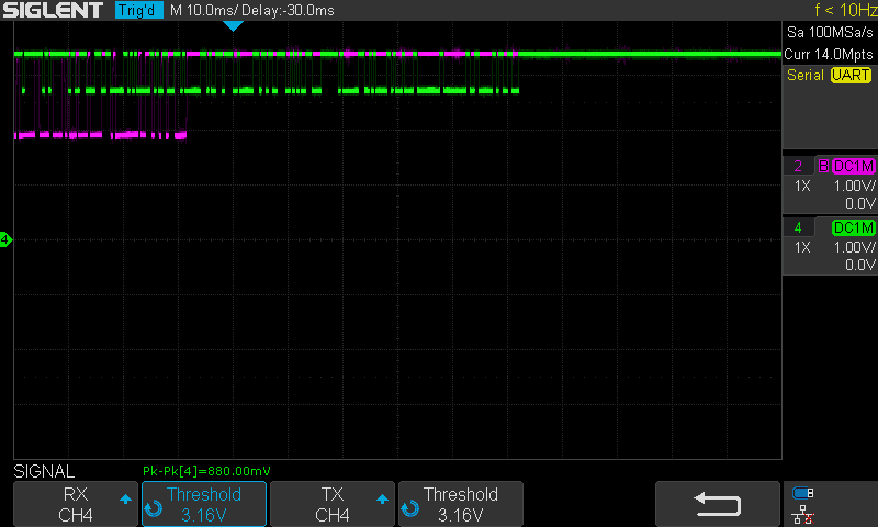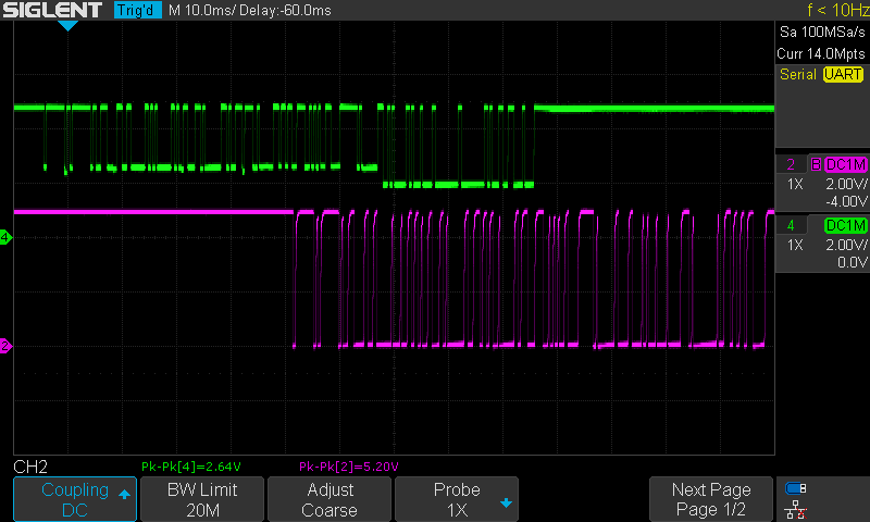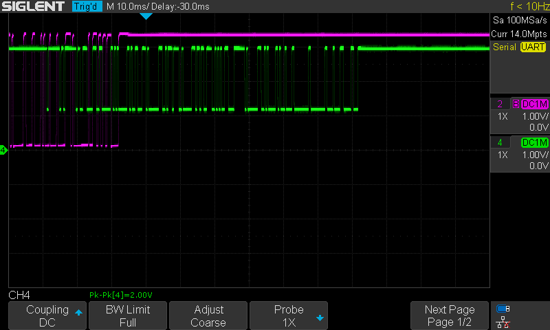 There has been an improvement on the quality signal. This time the data has much more better squared shape. However, bytes 1 and 2 still not good enough and the bike doesn't seem to turn on.