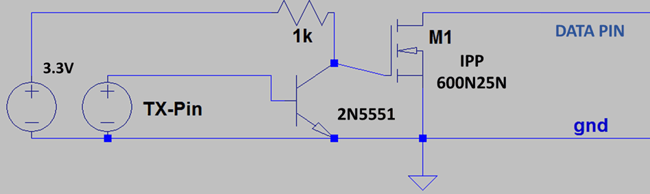 We learned that the bike uses a 5V system, but that there is some resistance probably on the battery side in the data line so that when the data pin is pulled to 5V, it cannot go to zero.